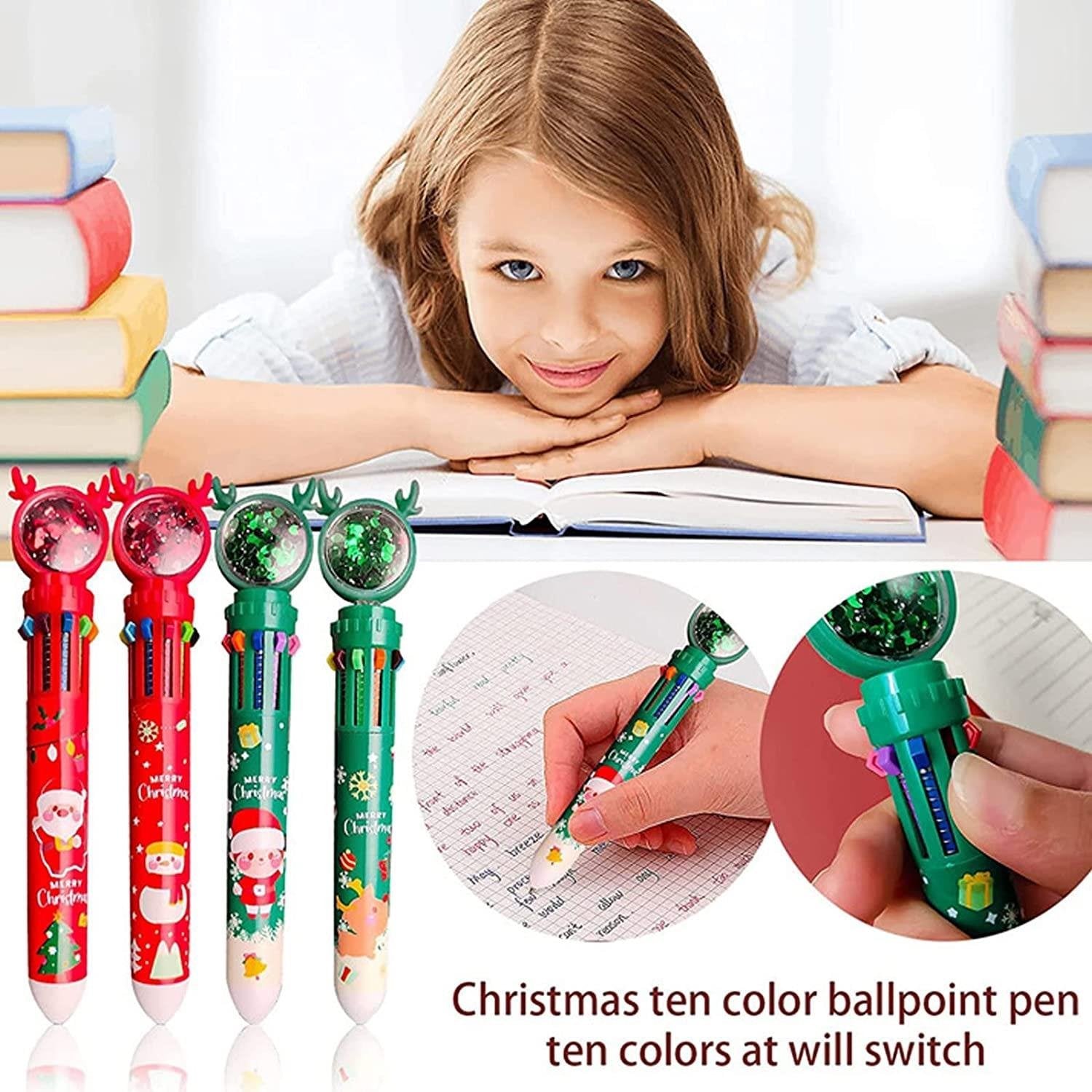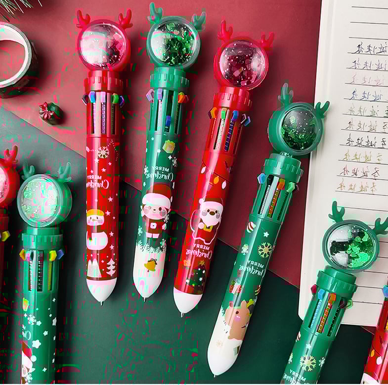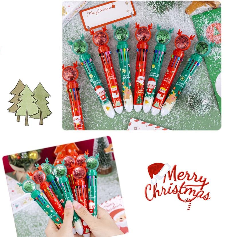 [10 in 1 Multifunction Ballpoint Pen] Christmas glitter pens with a variety of colors. They are unique and can be the perfect gift or treat for yourself.